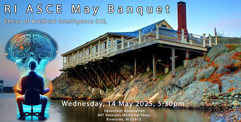 After a 2 year delay, RI ASCE celebrated its Centennial in grand fashion. On May 11th, members gathered at the Squantum Association for dinner. The nights events included installation of new Section officers, award of our scholarship, and a fascinating presentation by Senior Section advisor L. Robert Smith, P.E.